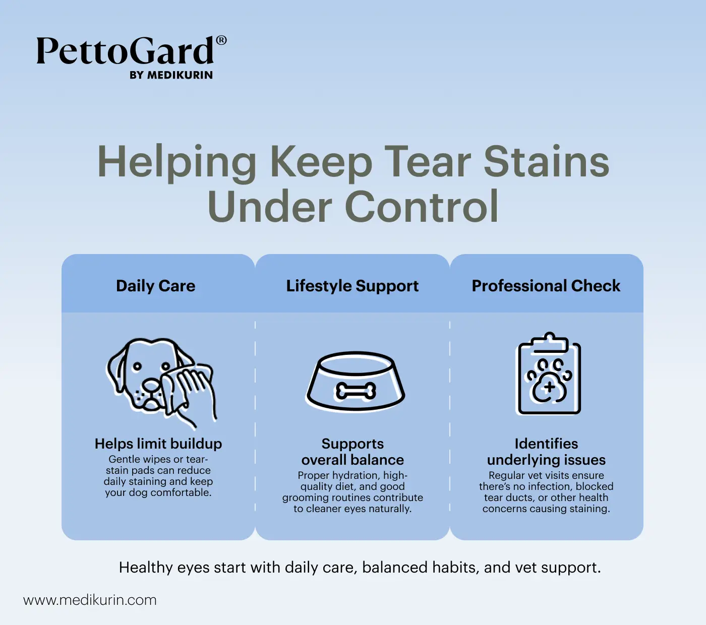 Complementary products like PettoGard Antimicrobial Skin Care & Wound Spray for Dogs can help maintain skin hygiene and comfort around the eye area when used as directed. Understanding the causes and appropriate care options will help you keep your dog healthy, comfortable, and looking its best.