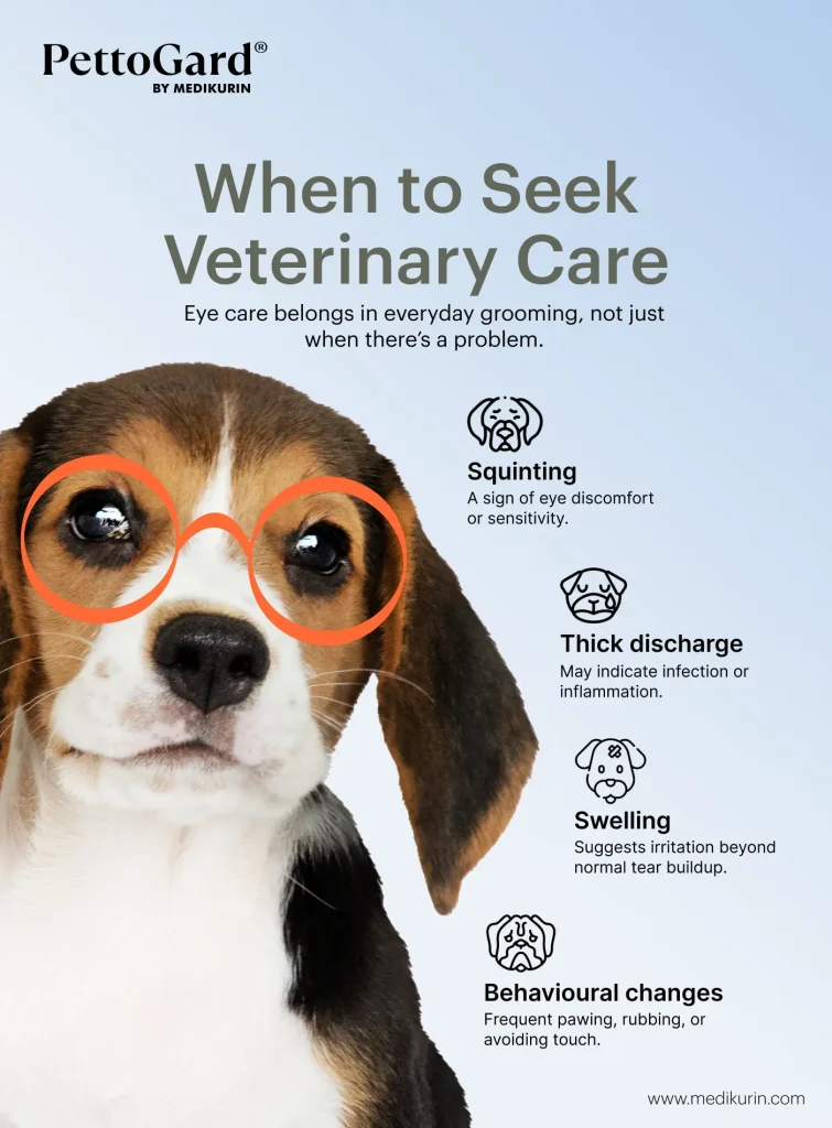 If your dog’s tear staining looks heavy, doesn’t improve, or comes with redness, discharge, or signs that they’re uncomfortable, it’s a good idea to have your vet take a look. This helps rule out eye infections or structural issues early on.