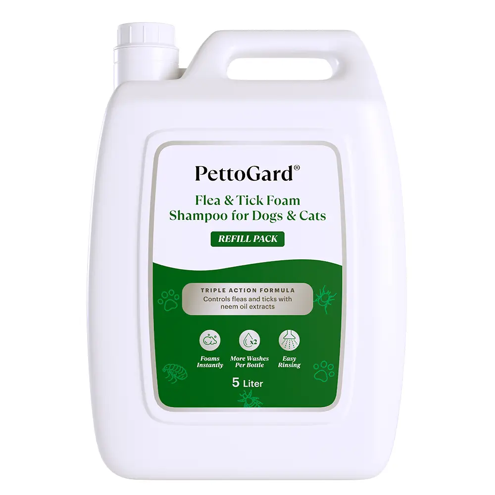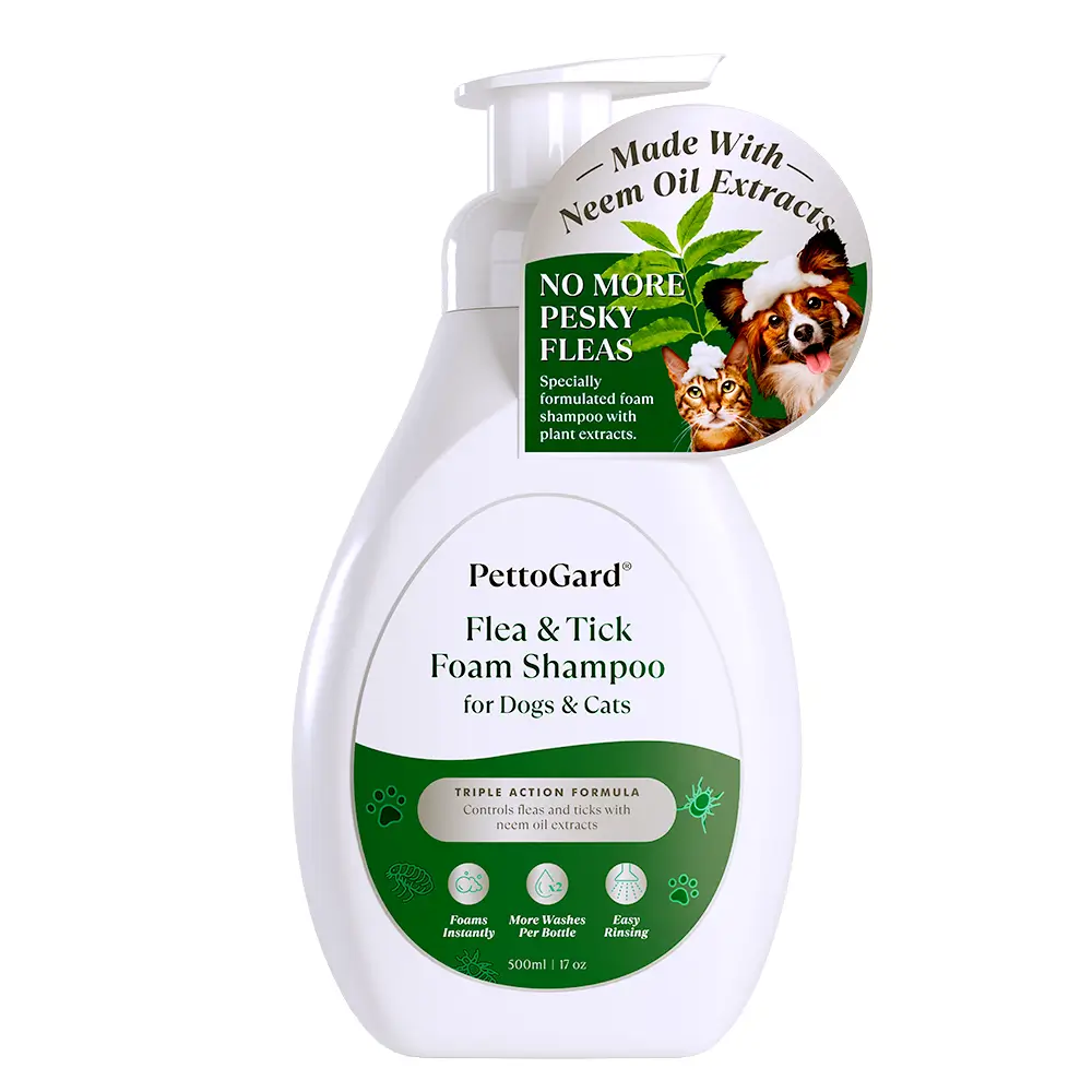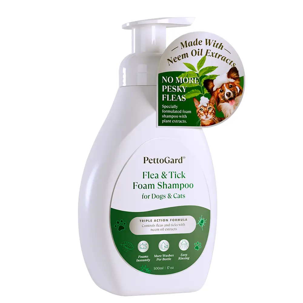 PettoGard® Flea & Tick Foam Shampoo for Dogs & Cats is an instant foaming shampoo suitable for pets suffering from fleas, ticks, mites, lice, and other pest problems.