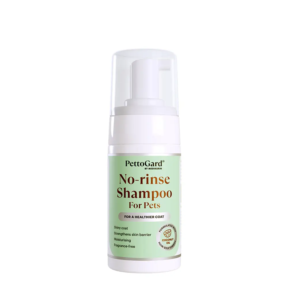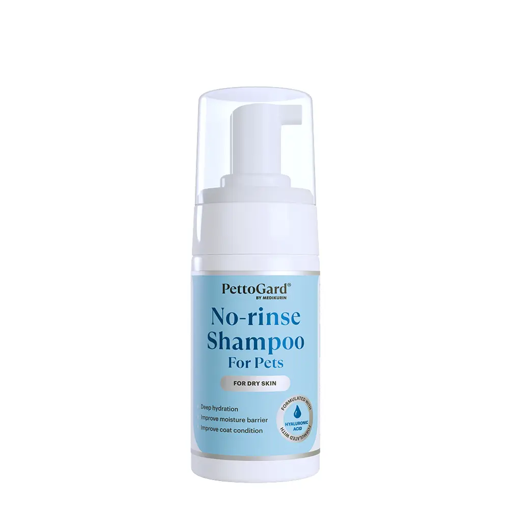 Dirt and other material can accumulate on your pet’s skin and coat over time and after outdoor activities. In sensitive animals, this can lead to irritation and encourage the spread of bacteria. Regular cleaning is therefore essential for your pet’s well-being, but bathing your dog or cat using conventional liquid shampoo is not always easy. This may be due to lack of time, or because your pet is elderly, extra hyper, or anxious around water. In these cases, PettoGard® No-rinse Foam Shampoo for Dogs & Cats is the answer to quick cleaning without the stress or hassle.