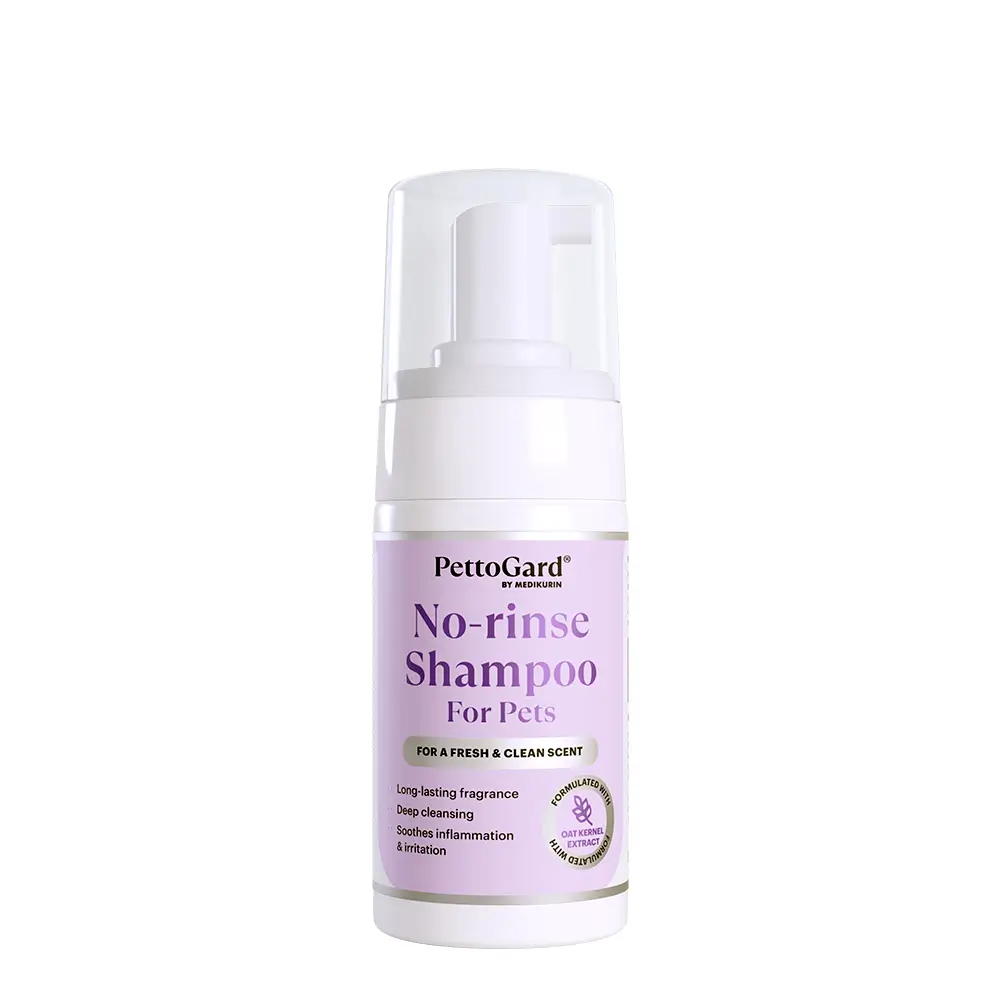 PettoGard® No-rinse Foam Shampoo is great for quick and hassle-free cleaning, For a deeper, more thorough clean, water baths with specially-formulated pet shampoo is recommended.