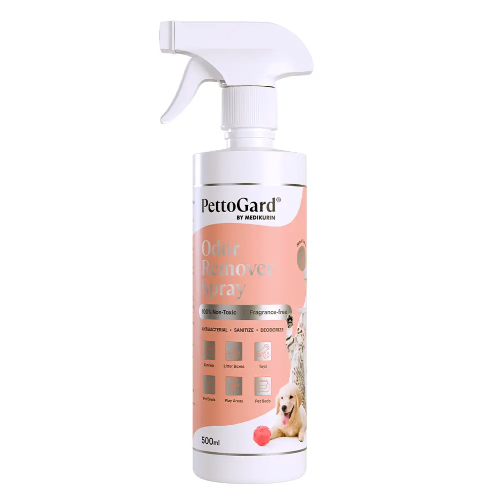 MEDIKURIN® PettoGard® Odor Remover Spray is formulated through a patented electrolyzed water that contains no toxic chemicals or additives, and poses no harm if ingested in small amounts. However, it is not recommended to ingest frequently or in large amounts.